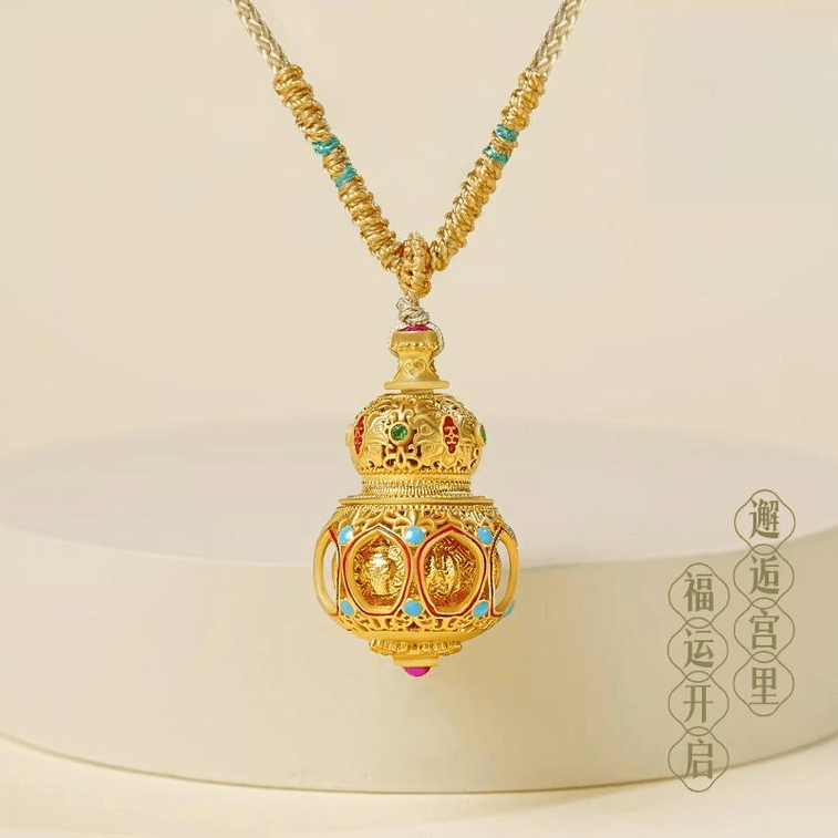 【中国直送】宮殿博物館タオバオ店 - 新入荷:ひょうたんネックレス レディース スターリングシルバーペンダント 中国風シルバージュエリー 新商品 縁起物 繁栄 23*13mm