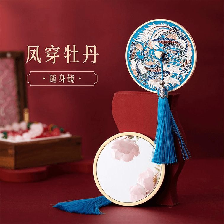 【中国直送】宮殿博物館タオバオ店 - 宮殿宝物博物館文化クリエイティブ鳳凰牡丹アンティークスタイルポケットミラー、直径8×8cm