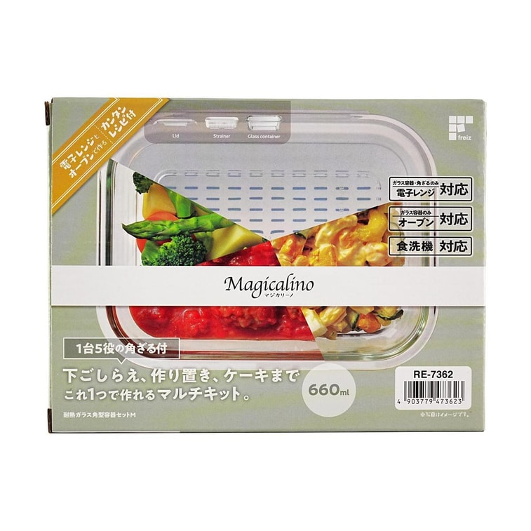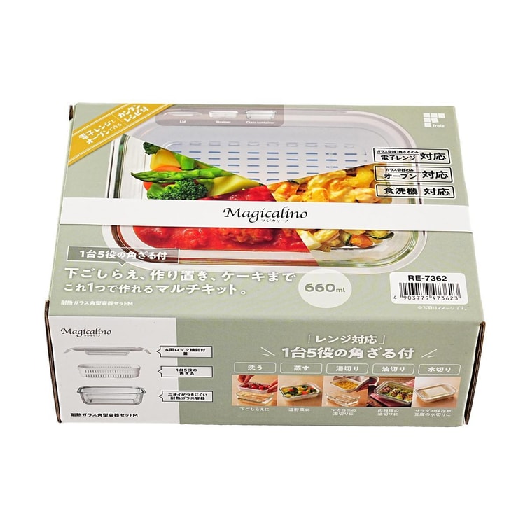 耐熱ガラススクエアフードコンテナセット マジカリノ Mサイズ 0.66L 22液量オンス 1~2人用