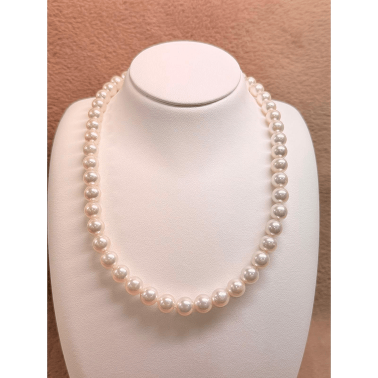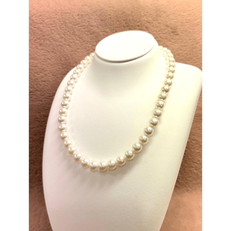 - 商品の特徴: 1. 8.5~9mmの大粒日本産アコヤ真珠を使用し、繊細な光沢とバランスの取れたフォルムが魅力です。 2. ネックレスの長さは約41~42cmで、ロジウムメッキのシルバー留め具で快適な着け心地です。 3. 品質を保証する鑑定書、保証書、収納箱が付属します。 4. 結婚式、セレモニー、仕事など様々なシーンでお使いいただけるだけでなく、普段使いにも上品な雰囲気を添えてくれます。