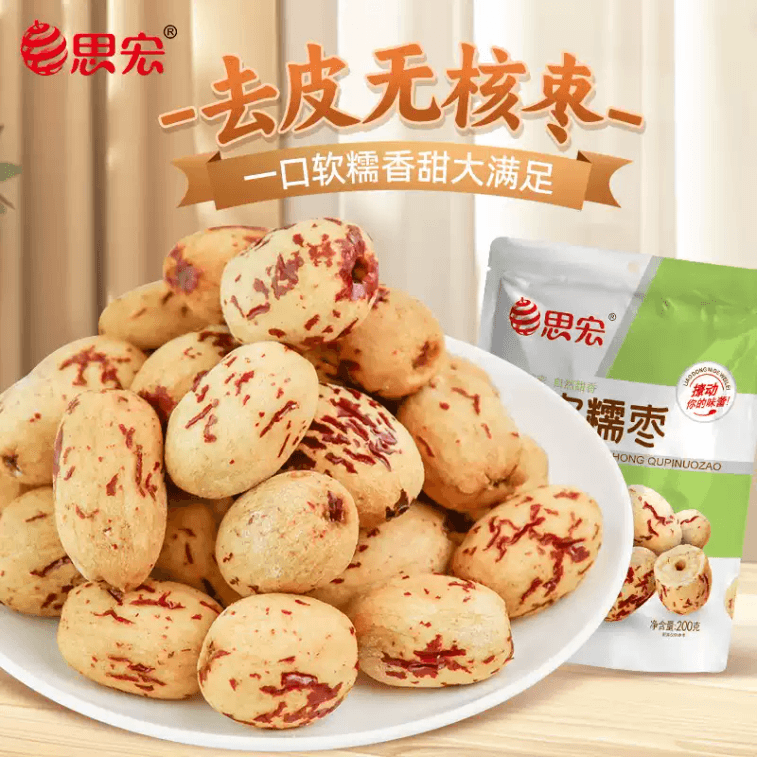 Peeled and Pitted Red Dates, Xinjiang, No-Wash, for Soup, Congee, Snacks, Ready-to-Eat Red Dates 200g*1 Bag