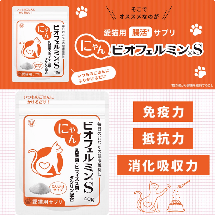 【日本直送】大正製薬 ペット猫用 腸活パウダー 乳酸菌・ビフィズス菌配合 40g