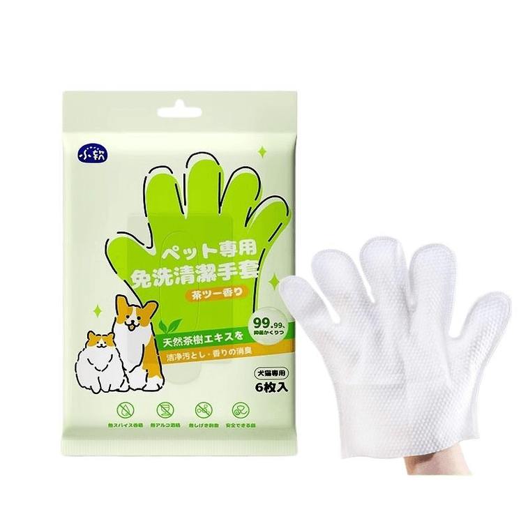 【中国直送】ヒッピードッグ ペット用洗える手袋 ワイプ クリーニング&ドライシャンプー製品 消臭ティッシュ ティーツリーの香り 6枚入り | Yami
