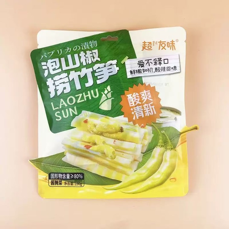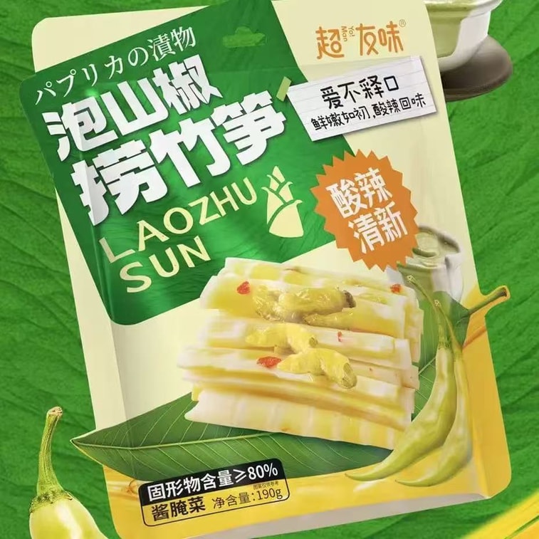 スーパーフレーバーの唐辛子たけのこの漬物、唐辛子たけのこの先端の漬物、スパイシーで酸っぱいたけのこの漬物、食欲をそそり、満足感のあるスパイシーで酸っぱいスナック、190g/パック