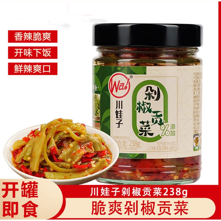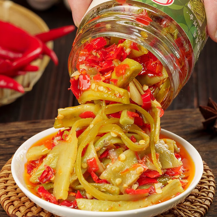 食感と風味豊かな四川風漬物!このピリッとしたブレンドは、サクサクとした細かく刻んだ 公孫 独特のシャキシャキとした食感の乾燥茎野菜を、発酵させたチリソースで和えました。風味豊かでスパイシー、そしてほのかな酸味が特徴で、お粥、ご飯、麺類の付け合わせとして、または料理にパンチを効かせるトッピングとして最適です。瓶から出してそのままお召し上がりいただけます。調理は不要です。