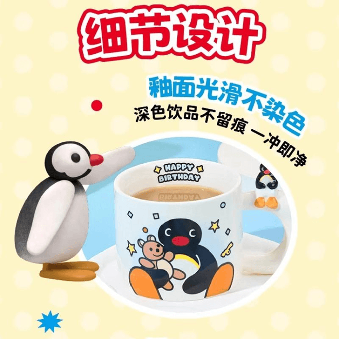 [中国直送] Yancang Pingu コラボマグカップ かわいい陶器製ウォーターボトル 誕生日マグ+蓋 8cm
