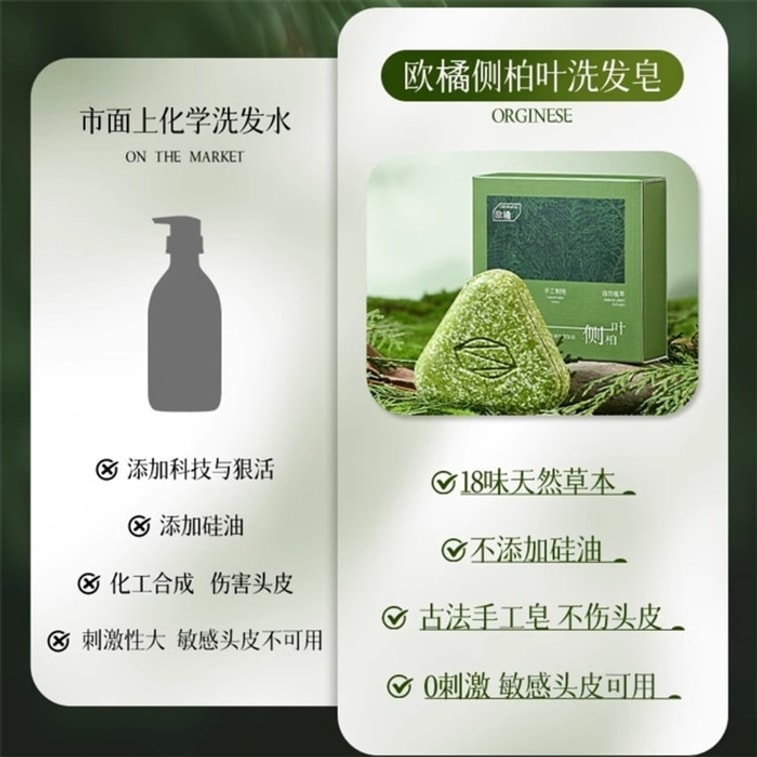 【中国直送】ヨーロピアンオレンジ、ヒノキの葉のシャンプーバー、新疆ウスマニアハーブ、ツルドクダミ、漢方薬入りハンドメイド、120g/箱、髪の強化、切れ毛防止、皮脂コントロール、フケ除去に。 | Yami