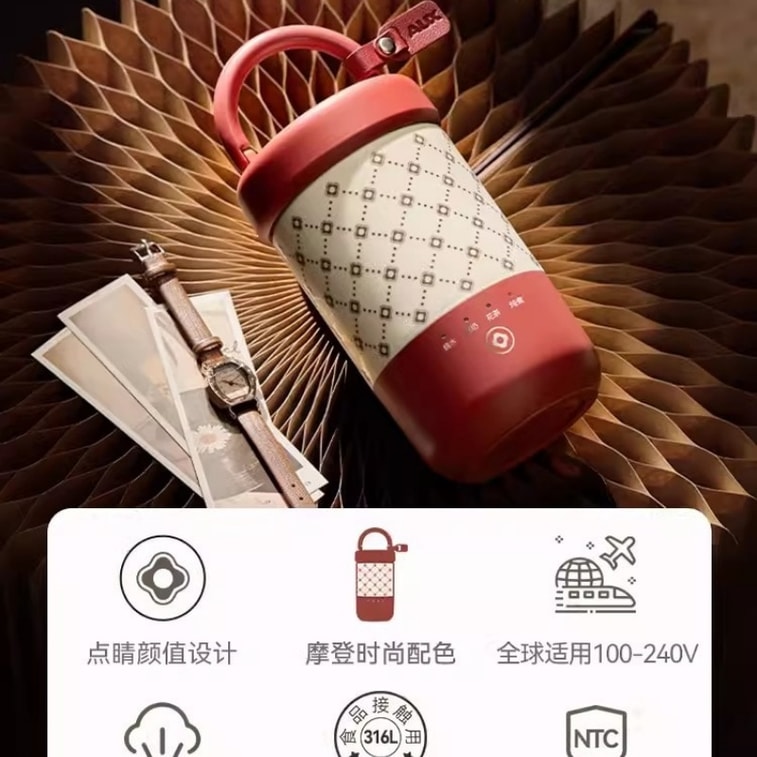 [中国直送] AUX 316L ポータブル電気ケトル 旅行用ウォーターケトル 電気シチューカップ 小型加熱保温カップ レトロレッド シングルパック | Yami