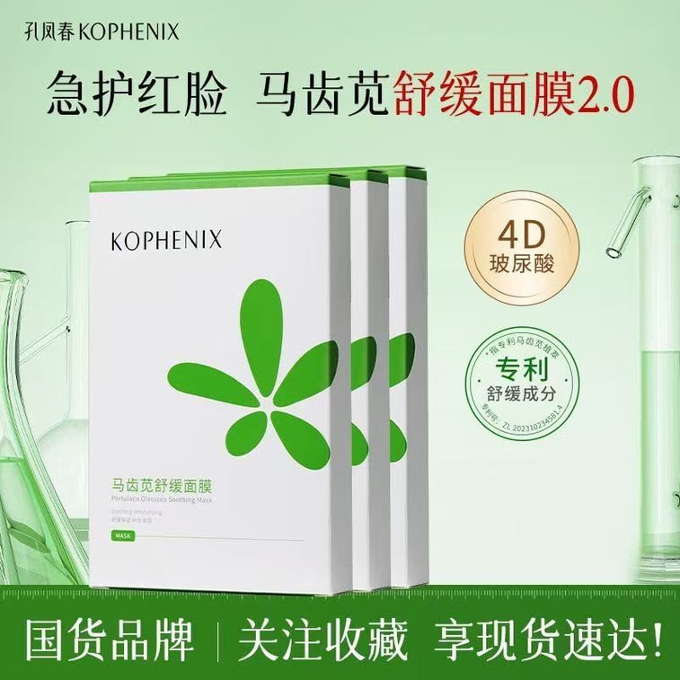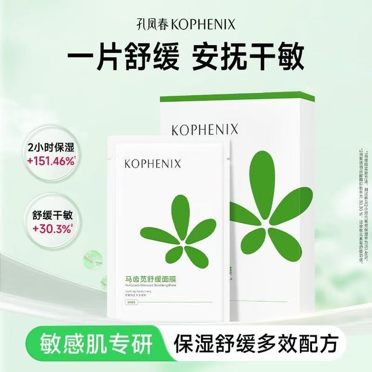 Kong Fengchun スベリヒユ 鎮静・保湿フェイシャルマスク(女性用)、5 枚入り、敏感肌に適しています。