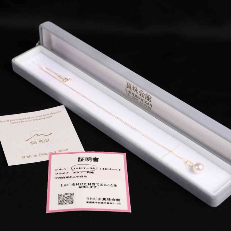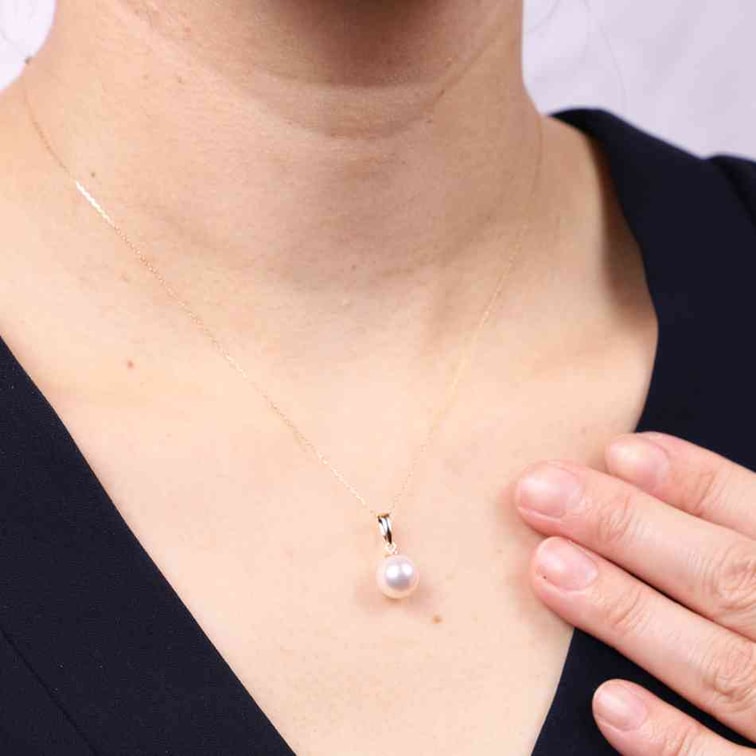 パールホール || アコヤ真珠 ラウンド&キラキラ K18G シングルネックレス || 8.0-8.5mm