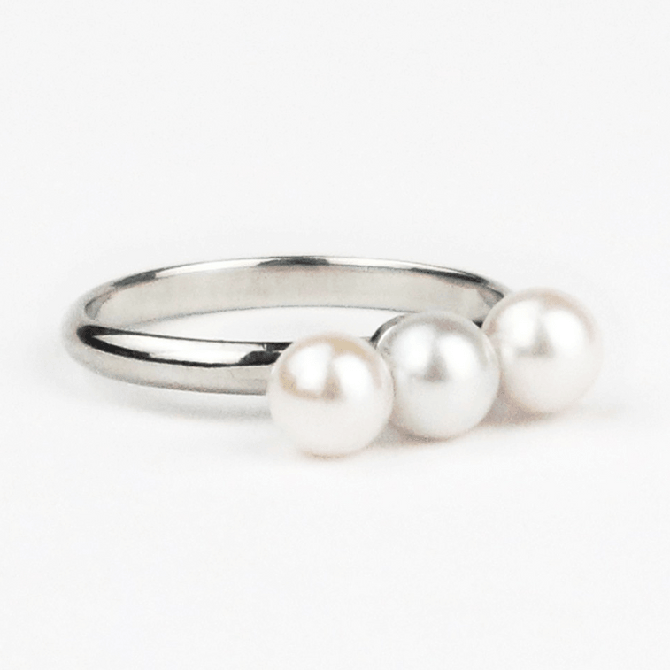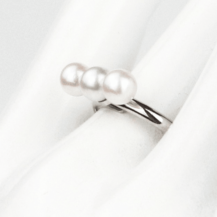 宇和海真珠 バランスビーム 3玉 アコヤ 調節可能リング 50g