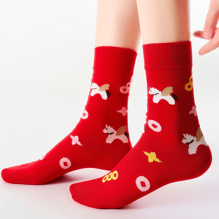 2026年 午年 幸運のソックス ギフトセット 赤い干支ソックス 幸運がやってくる 5足セット