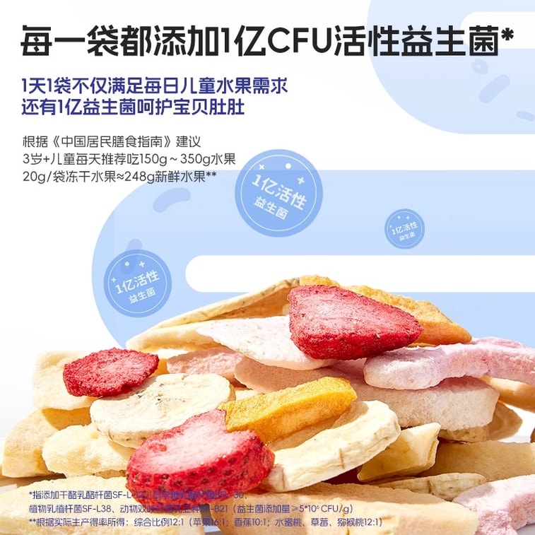 【中国直送】ミャオ・シャオシア プロバイオティクス フリーズドライフルーツチップス 無糖 お子様用スナック 20g/箱