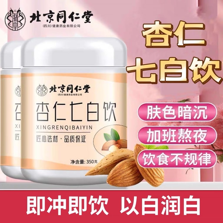 北京トンレンタンアーモンドセブンホワイトドリンク350グラムホワイトニングトーン、黄色と黒ずんだ肌に別れを告げる、栄養価の高い食事代替品、低カロリーの朝食、蓮の実、ヤムイモ、白キノコ、ポリア、米、クズの根、ユリが含まれています