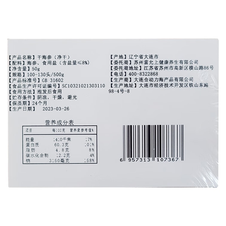 【中国直送】雷雲商 乾燥ナマコ 50g 乾燥ナマコ、遼ナマコ海産物、塩分≤8%