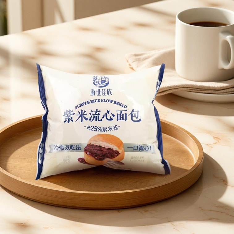 %以上、ふわふわのパンにたっぷりと詰めています。一口食べるごとに、柔らかく甘い紫米の芯が口の中で弾け、豊かな米の香りと新鮮な小麦の香りが絶妙に融合します。温かいうちに召し上がれ。紫米の温かく柔らかな食感を、冷たいうちに召し上がれ。2通りの食べ方で、楽しさも倍増。