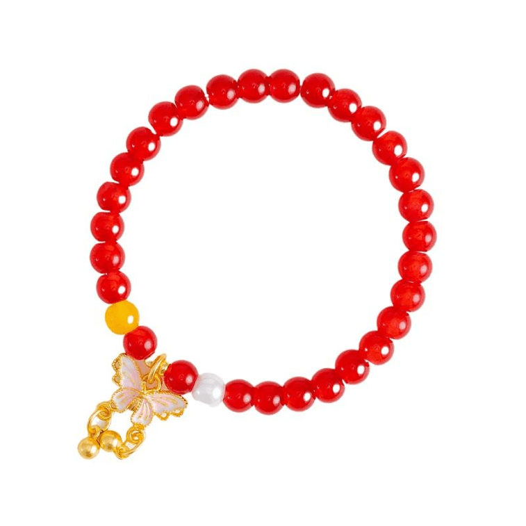 【中国直送】普陀山オリジナル新作中国風精巧レッドカルセドニーブレスレット:レッドカルセドニー+バタフライ 6mm