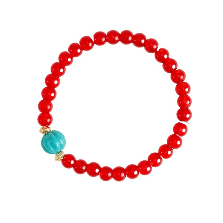 [中国直送] 普陀山オリジナル新作中国風精巧レッドカルセドニーブレスレット:レッドカルセドニー+ターコイズ 6mm