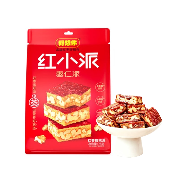 HAOXIANGNI 「I Miss You Red Mini Pie 78g」、ナツメとクルミ入りパイ、大きめのパイ、カジュアルなスナック、健康に欠かせない、子供向けのヘルシースナック | Yami
