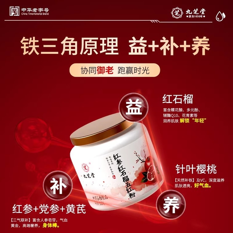 【中国直送】九之堂 紅参・ザクロ・五赤粉末 - 女性の血気を養い、血虚・気虚を解消 500g/缶【飲んで血色よく、活力アップ】