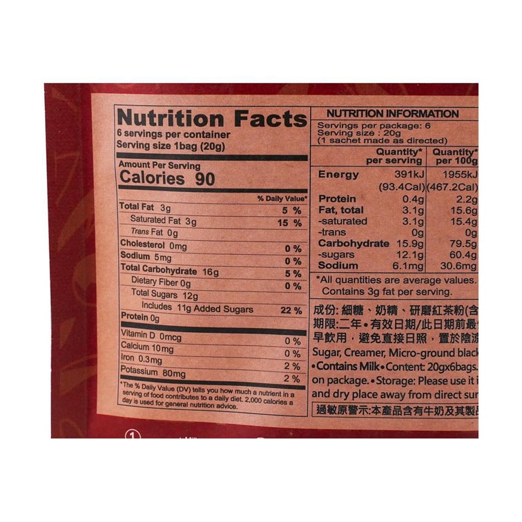 *免責事項:栄養成分情報は商品パッケージに基づく参考情報です。仕様・言語・撮影の違いにより内容が異なる場合があります。実際のパッケージをご確認ください。成分やアレルゲン等に不明点がある場合は、表示を確認するかカスタマーサービスへご連絡ください。