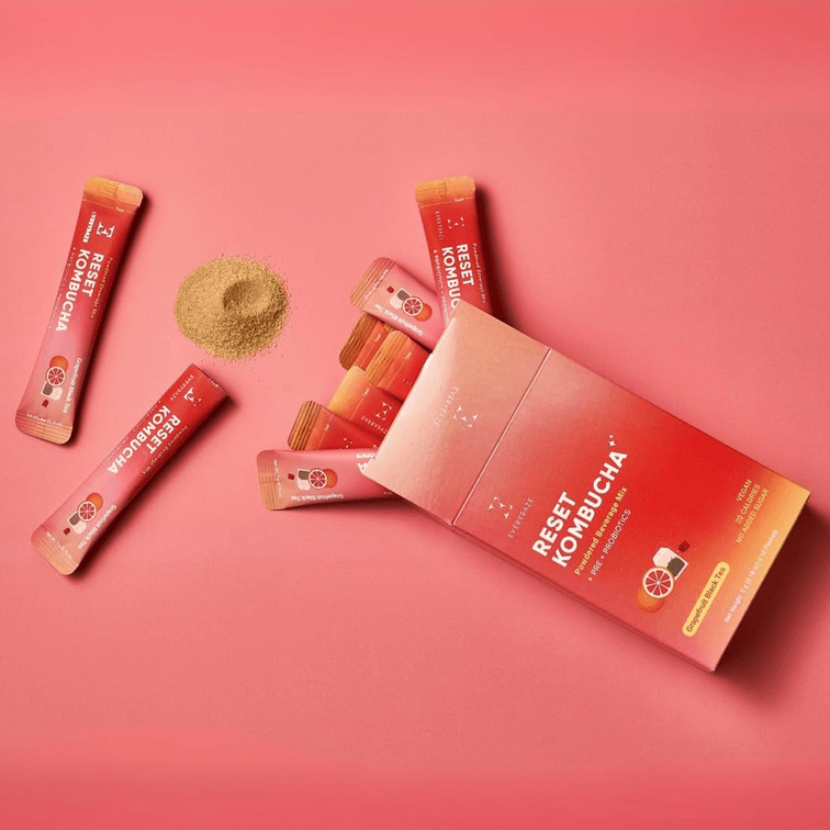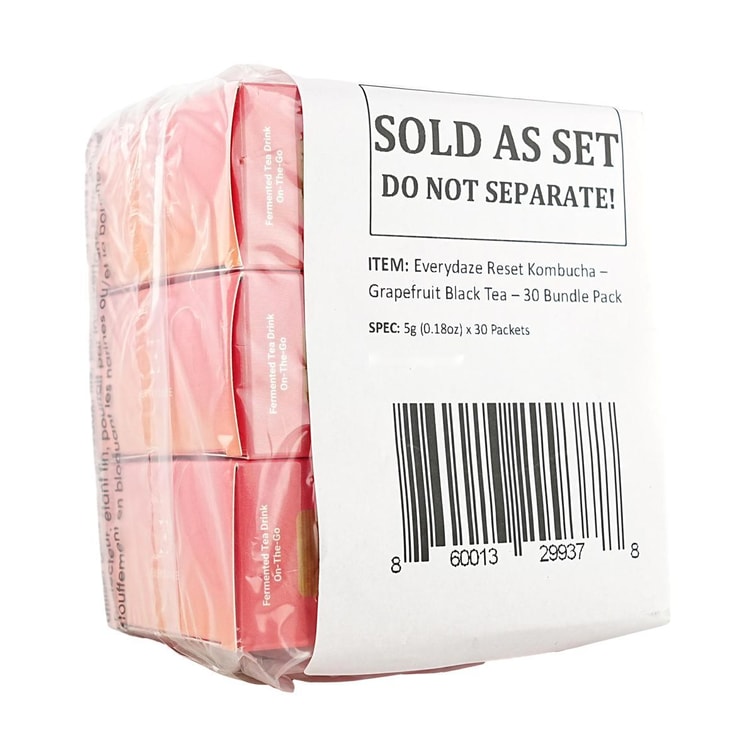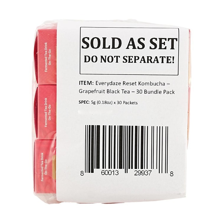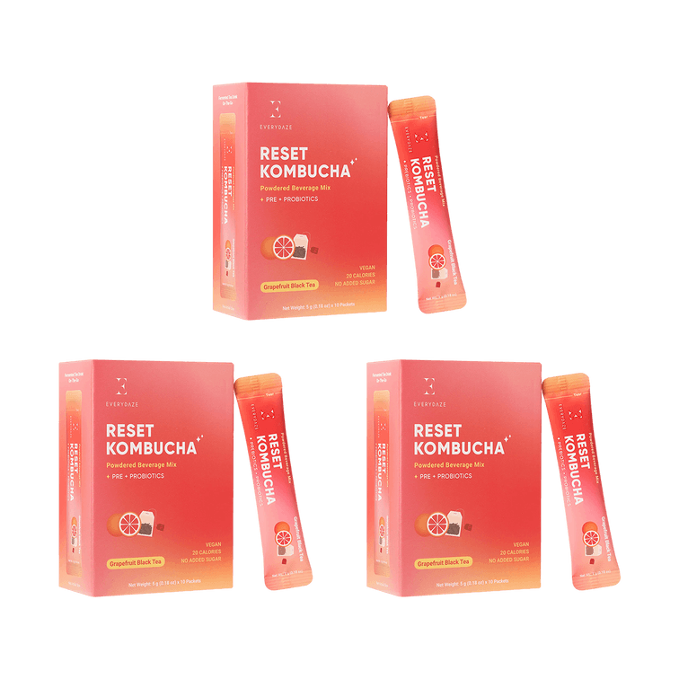 リセットコンブチャ、ヴィーガンプロバイオティクススティック、グレープフルーツブラックティー、30本入り - 無糖&20kcal【30日間リセットキット】