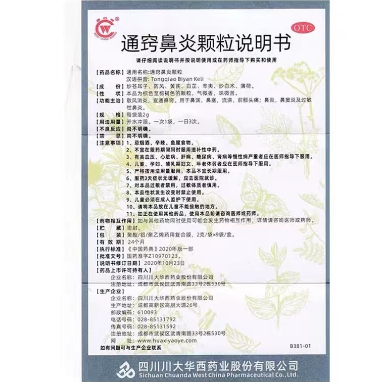 【中国直送】華喜ブランド通橋鼻炎顆粒 - 抗炎症作用、鼻づまり、鼻水、前頭部頭痛、アレルギー性鼻炎、副鼻腔炎に - 12袋/箱
