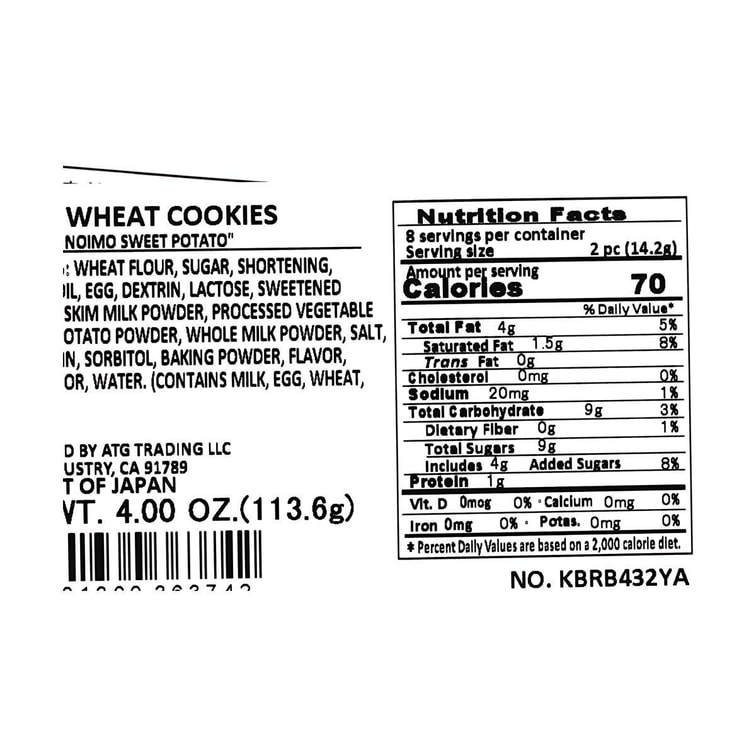 ロアンヌ ベイクドウィートクッキー、安納芋サツマイモ風味ウエハースビスケット、4オンス【季節限定】