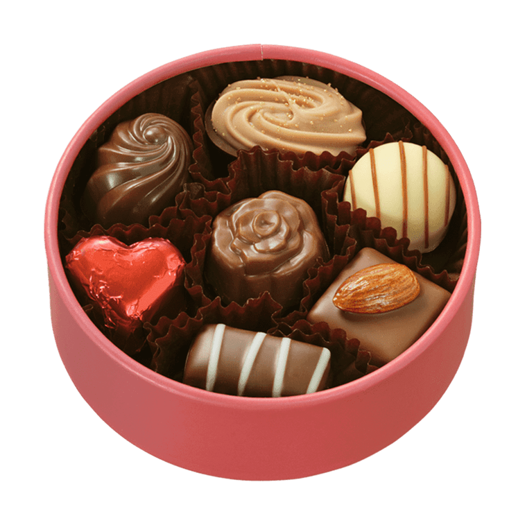 ギフトボックスの内容:ラズベリーチョコレート*1、ミルクチョコレート*1、フィヤンティーヌチョコレート*1、ストロベリーチョコレート*1、オレンジチョコレート*1、キャラメルチョコレート*1、ヘーゼルナッツアーモンドチョコレート*1