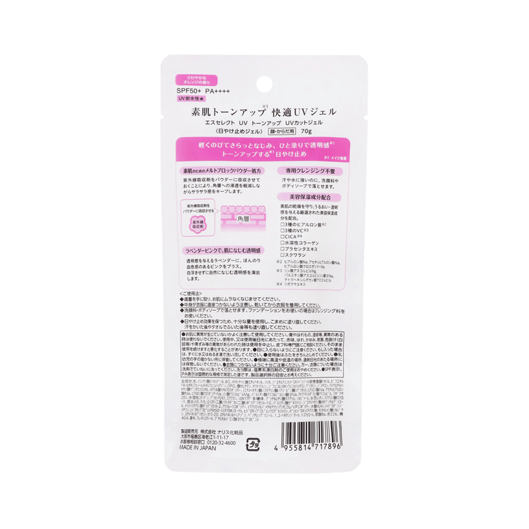 日本 Sセレクト ブライトニングサンスクリーンジェル SPF50+・PA++++ 70g 素肌のような輝き・軽いつけ心地でベタつかない