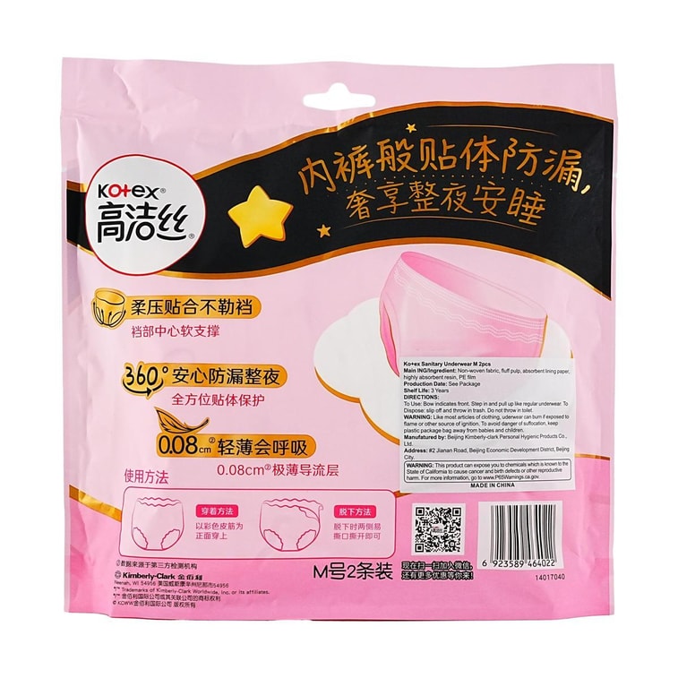 使い捨て超薄型夜用生理用下着、Mサイズ、2枚入り
