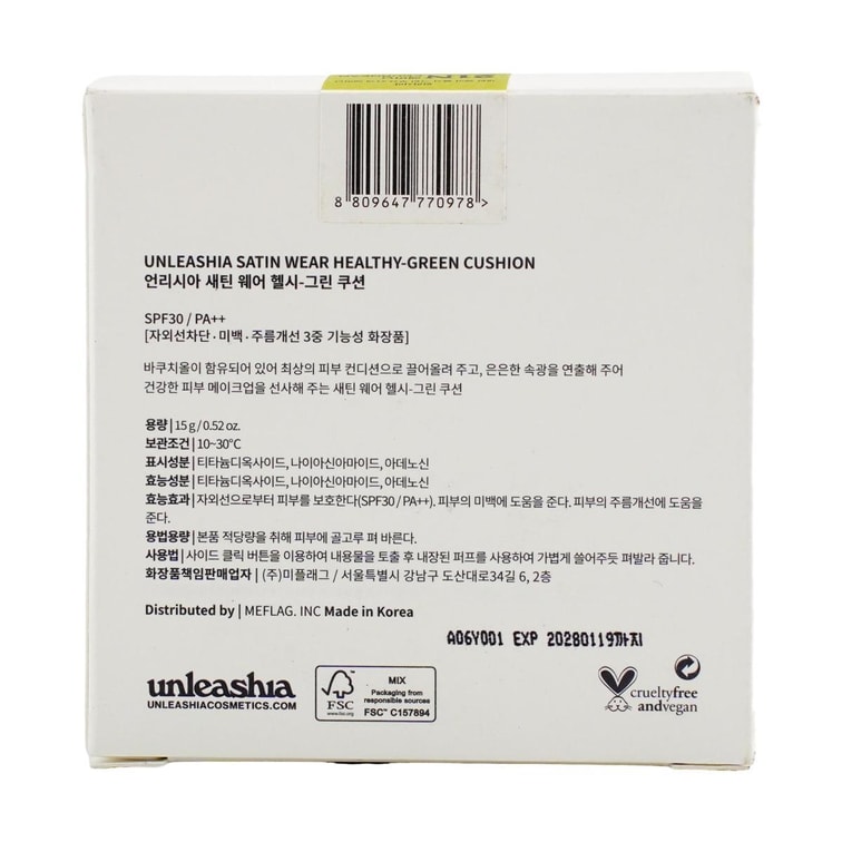 サテンウェア ヘルシーグリーンクッション、SPF30 / PA++、ヴィーガン、0.52オンス #21N エバーニアン