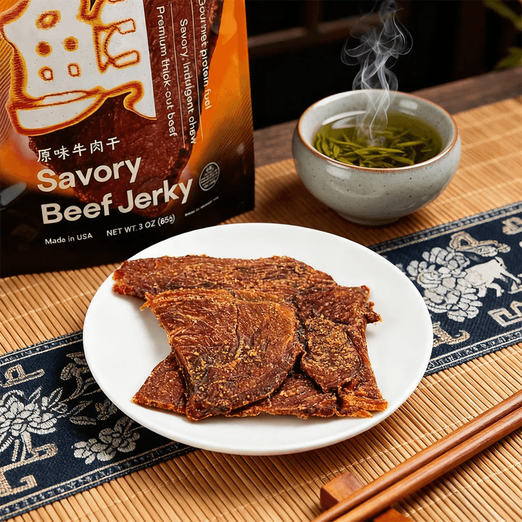 風味豊かなビーフジャーキー、プレミアム厚切りビーフ、3オンス【低カロリー、グルメなタンパク質燃料】【風味豊かで贅沢な噛みごたえ】