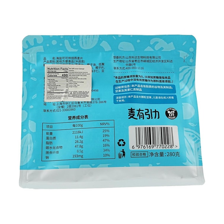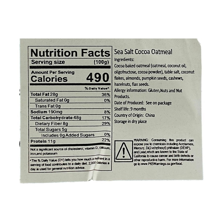 シーソルトココアベイクドオートミール 9.88オンス 【Yami限定】