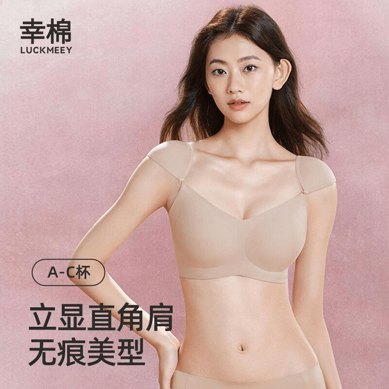 ラッキーコットン バッククローク インビジブルスキン サイズS パッド入りショルダーブラ ファンデーション シームレス インビジブル スモールバスト エンハンスメント プッシュアップ アンチサギング スキントーン ライトアングルショルダーブラ