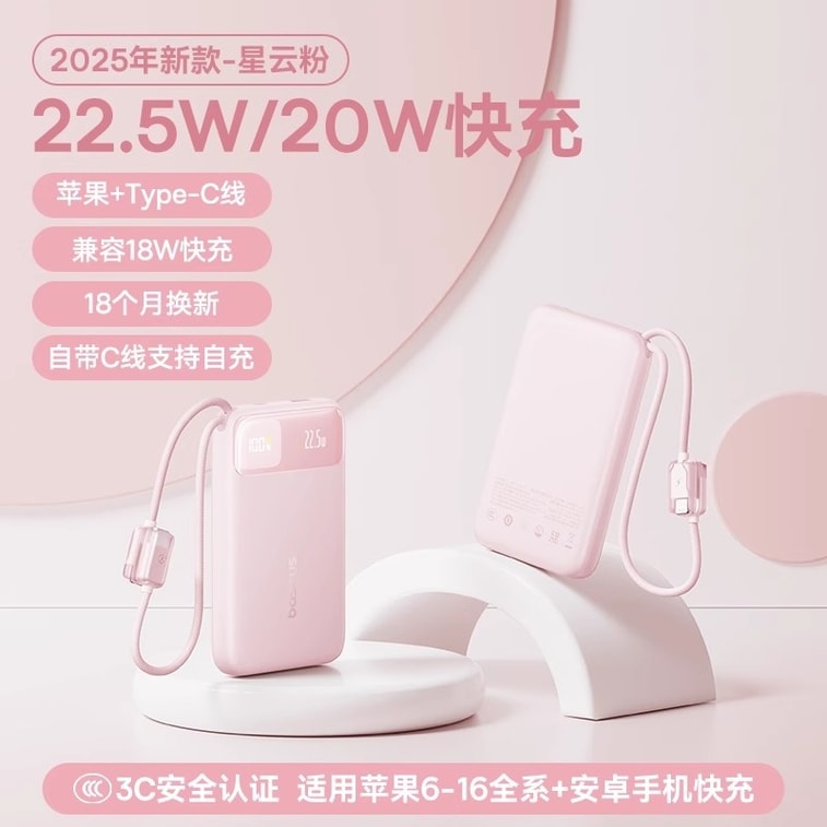 [中国直送] Baseus 新登場 20000mAh 大容量モバイルバッテリー デュアルライン 20W 急速充電対応 (ピンク)