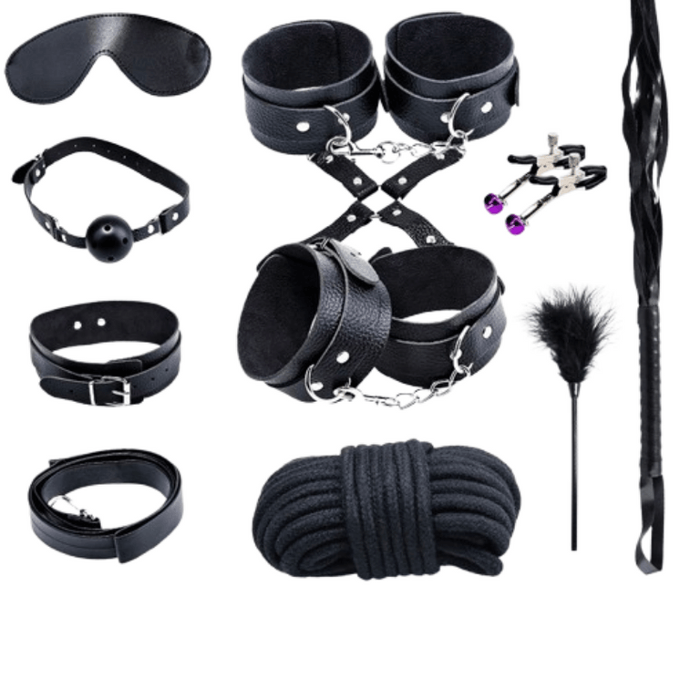 【中国実費送料】Miji 大人のおもちゃ 10点セット ボンデージ 女性用おもちゃ セックス玩具 SM用品 レザーセット ブラック 1セット