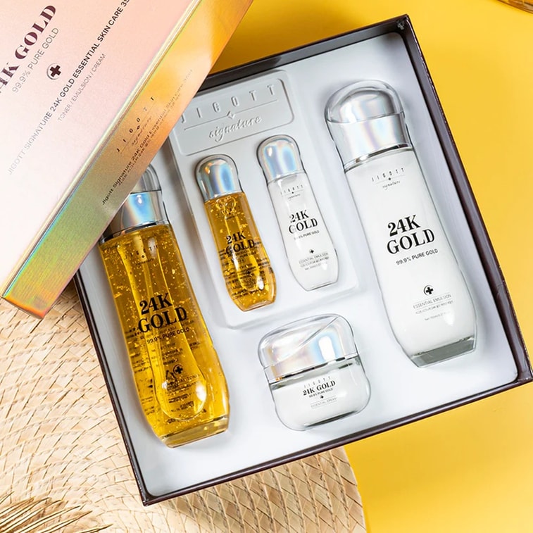 韓国ブランド、ジゴテ 24K ゴールド ラディアンス スキンケア 3 点セット: リフレッシュしながら保湿し、柔らかく輝く肌へ。