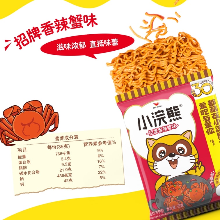 【中国直送】統一商会 スパイシーカニ風味パリパリ麺 35g×1袋