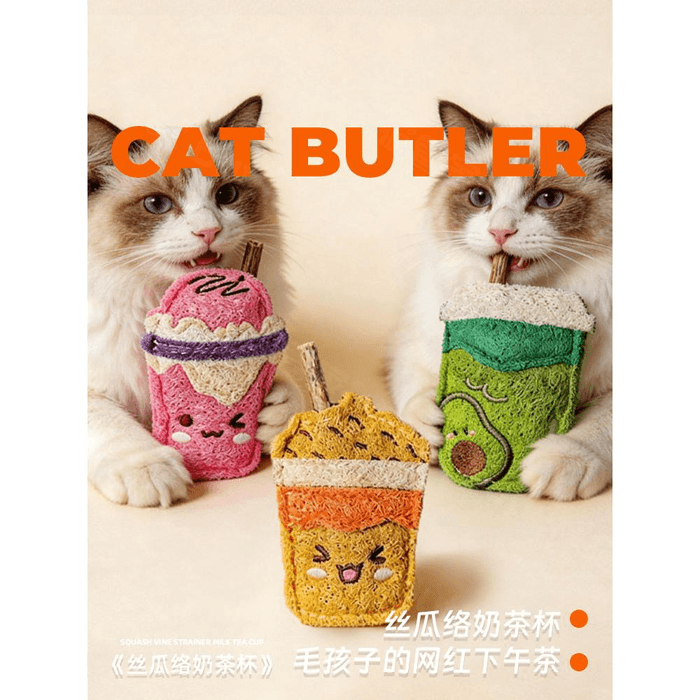 【中国からの直送】キャットバトラー ヘチマ猫用おもちゃ、子猫用歯固めおもちゃ、歯磨きおもちゃ、アボカドミルクティーカップ、ヘチマプリン(1個) | Yami