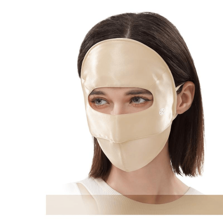 【中国直送】夏琴シルク 日焼け止めマスク UVカット・ブルーライトカット マルベリーシルク クラシックシャンパンゴールド 25.5×7cm