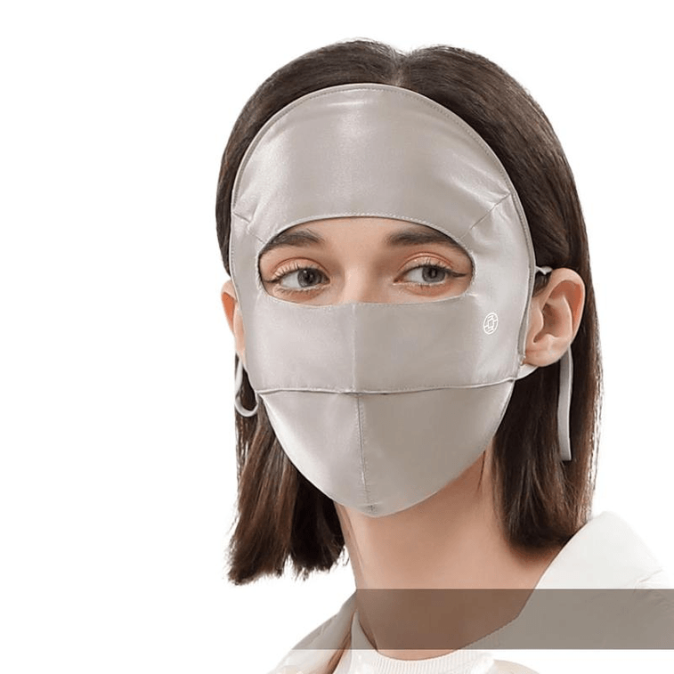 【中国直送】夏秦シルク 日焼け止めフェイスマスク UVカット ブルーライトカット マルベリーシルク アップグレード版 スペースグレー 25.5×7cm