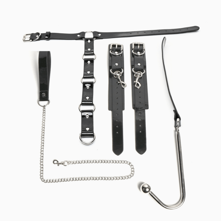 SMU Smoo SM レザーボンデージ ステンレススチール アナルプラグ フックセット ウェアラブルハーネス セクシーボンデージ セックストイ 1セット | Yami