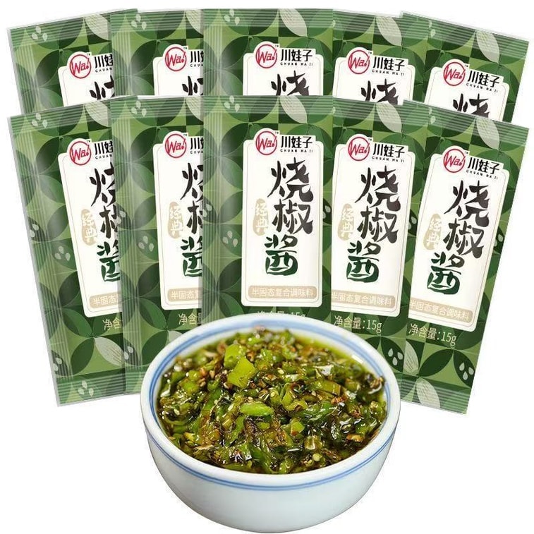 Small Pack of Roasted Chili Sauce with Tiger Skin Green Peppers, Dipping Sauce for Rice, Noodles, and Century Eggs, Sichuan Side Dish [10 Packs Inside], Approx. 150g*1 Bag