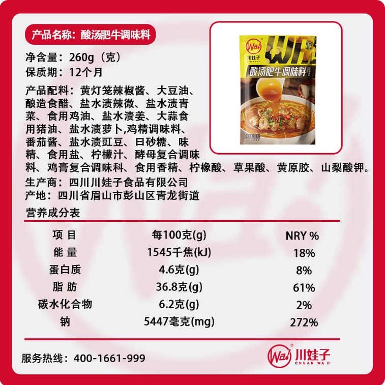 【中国直送】川和子酸辣湯牛肉調味料 260g