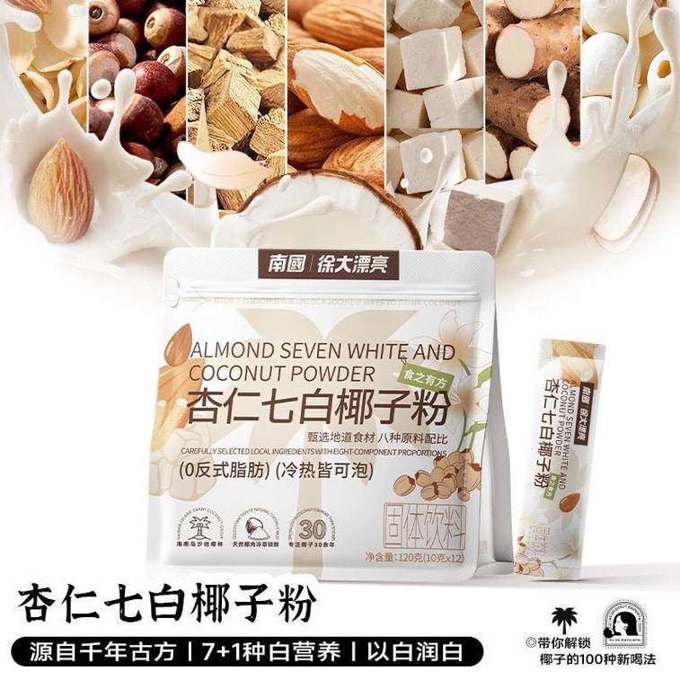 【中国直送】Nanguoアーモンドセブンホワイトココナッツパウダー、1袋150g、ポリア、ヤムイモ、蓮の実、女性のための美白インスタント栄養ドリンクが含まれています。 | Yami