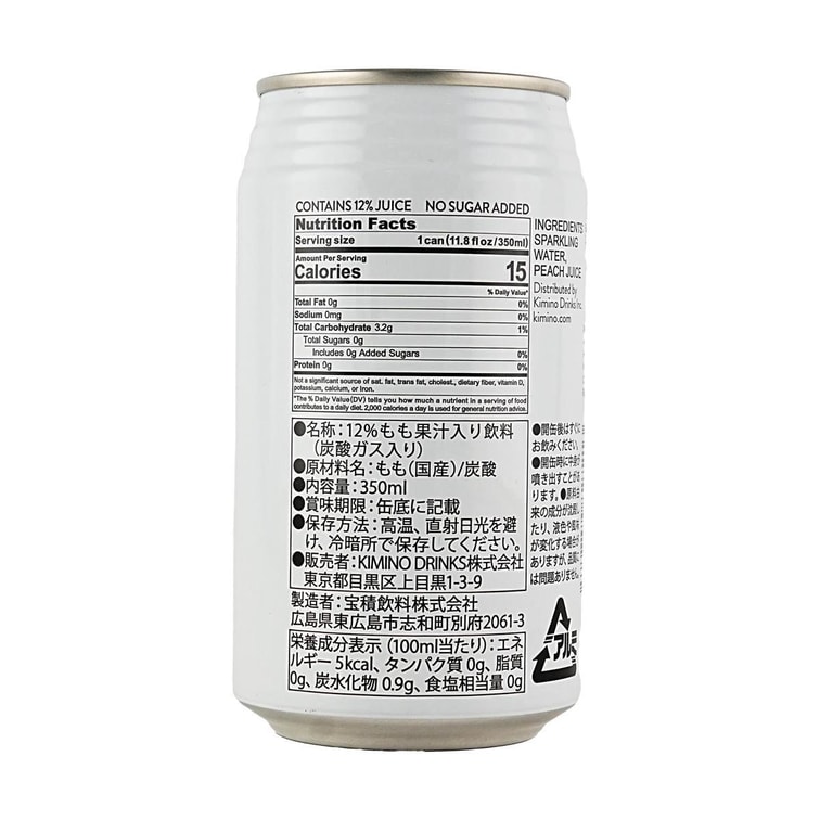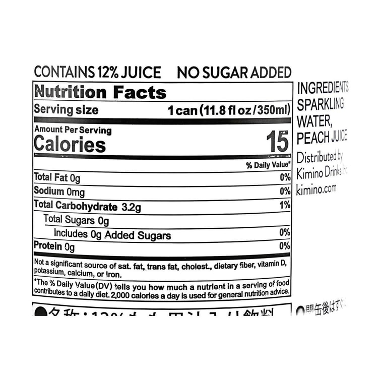 スパークリングウォーター ピーチ味 11.8液量オンス【糖類0、脂肪0、低カロリー】