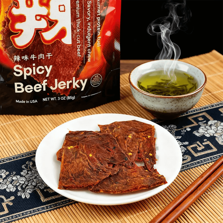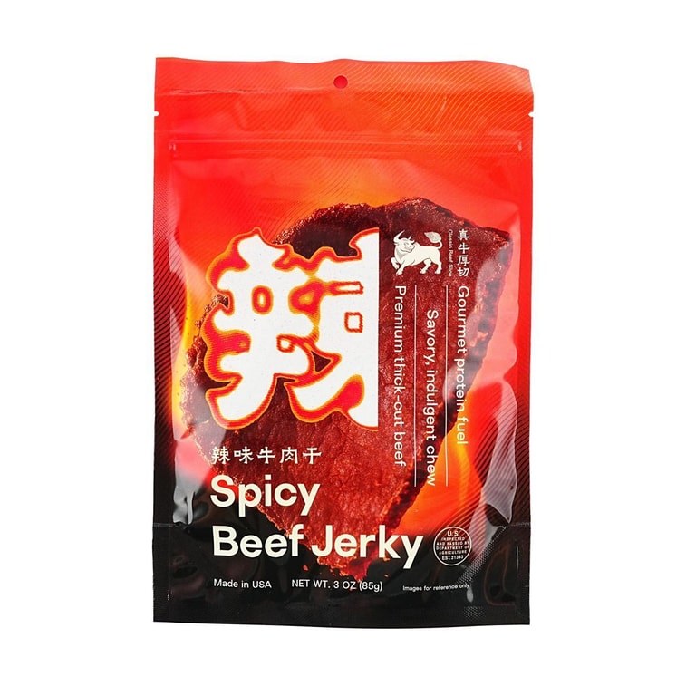 スパイシービーフジャーキー、プレミアム厚切りビーフ、3オンス【低カロリー、グルメプロテイン燃料】【風味豊かで贅沢な噛みごたえ】