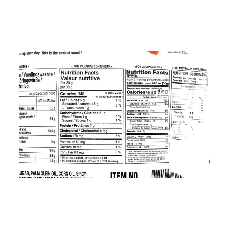 *免責事項:栄養成分情報は商品パッケージに基づく参考情報です。仕様・言語・撮影の違いにより内容が異なる場合があります。実際のパッケージをご確認ください。成分やアレルゲン等に不明点がある場合は、表示を確認するかカスタマーサービスへご連絡ください。