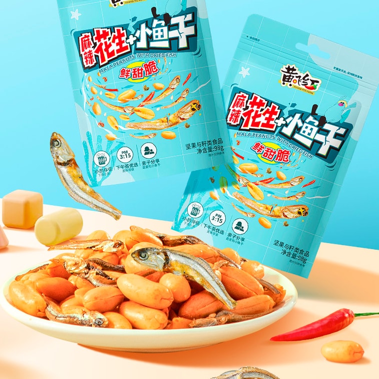 【中国直送】黄飛鴻 辛口干し魚ピーナッツ 98g